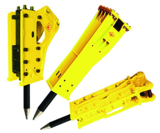 4)液壓破碎錘:主要用來破拆、打樁、開挖巖層、破壞路面表層、搗實土壤等工作。