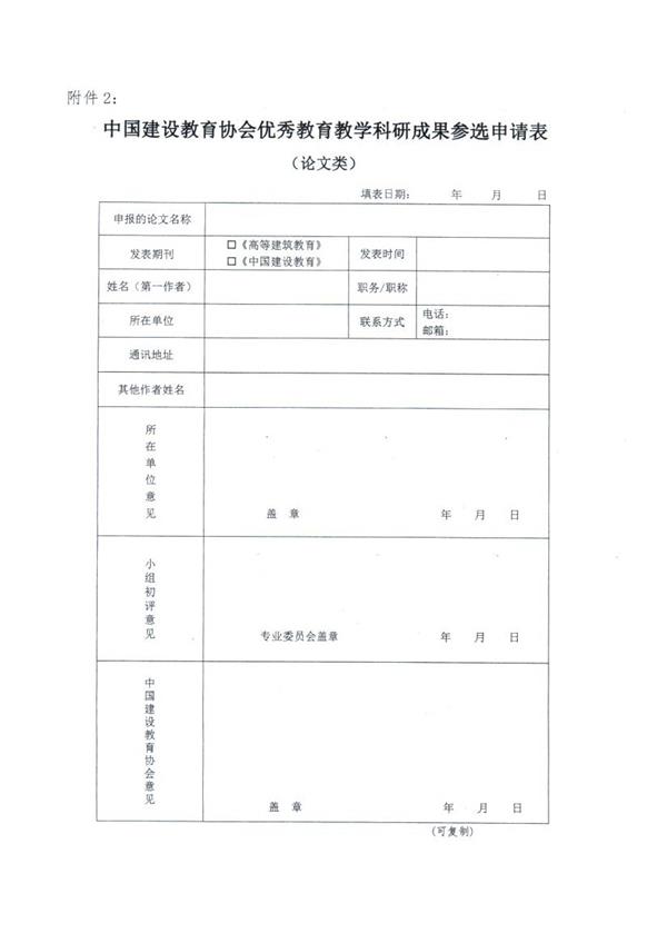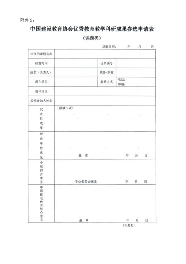 2.中國建設教育協會優秀教育教學科研成果參選申請表