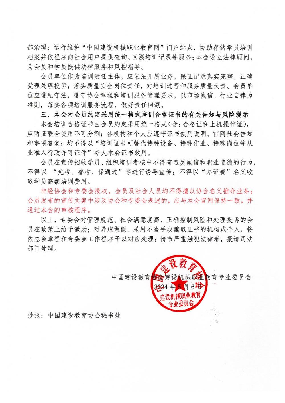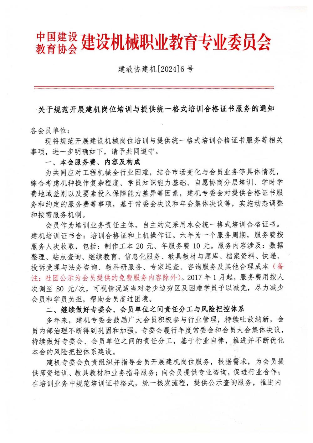 關于規范開展建機崗位培訓與提供統一格式培訓合格證書服務的通知